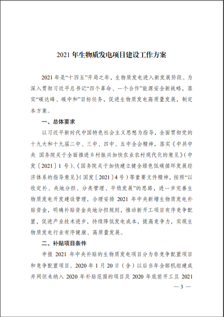 关于印发《2021年生物质发电项目