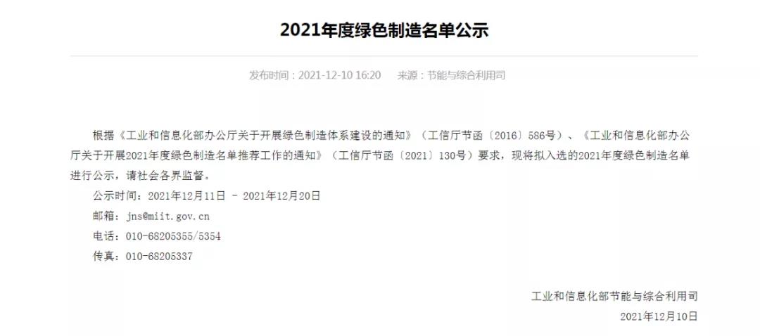绿色工厂是工业和信息化部为贯彻落实国家《中国制造2025》、《绿色制造工程实施指南(2016-2020年)》,加快推动绿色制造体系建设,打造绿色制造先进典型,引领相关领域工业绿色转型,经申报单位自评价、第三方评价机构现场评价、市级和省级工业和信息化部门审核推荐、国家工业和信息化部专家论证及复核、公示等环节确定的,是国家工信部针对符合“绿色发展”企业给出的权威认定。